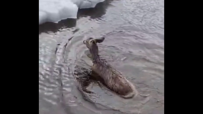 Лесничий из Амурской области вытащил детеныша косули со сломанным копытом из ледяной реки. Животное заметили сотрудники лесничества, когда он из последних сил барахтался в воде, а над ним кружили вороны в ожидании его гибели. Один из мужчин полез в холодную реку, чтобы достать косуленка.