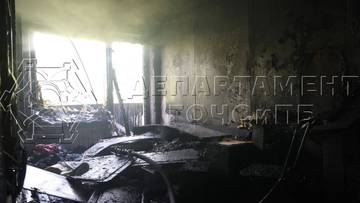 Появились кадры с места пожара в квартире на юго-западе Москвы