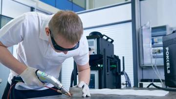 Столичная компания «Поккельс» приступила к серийному производству новой модели системы лазерной очистки. Мощный излучатель и легкий лазерный пистолет позволяют работать длительное время без необходимости воздушной защиты оптики, а подсветка зоны обработки и система помощи при фокусировке делают процесс более удобным. Также компактный ударопрочный корпус из композитного пластика обеспечивает необходимую мобильность. Система обеспечивает скорость очистки до 30 м²/ч, что помогает значительно сократить время обработки.