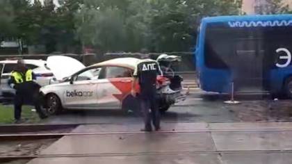 Двое пьяных молодых людей на каршеринге врезались в автобус в Москве