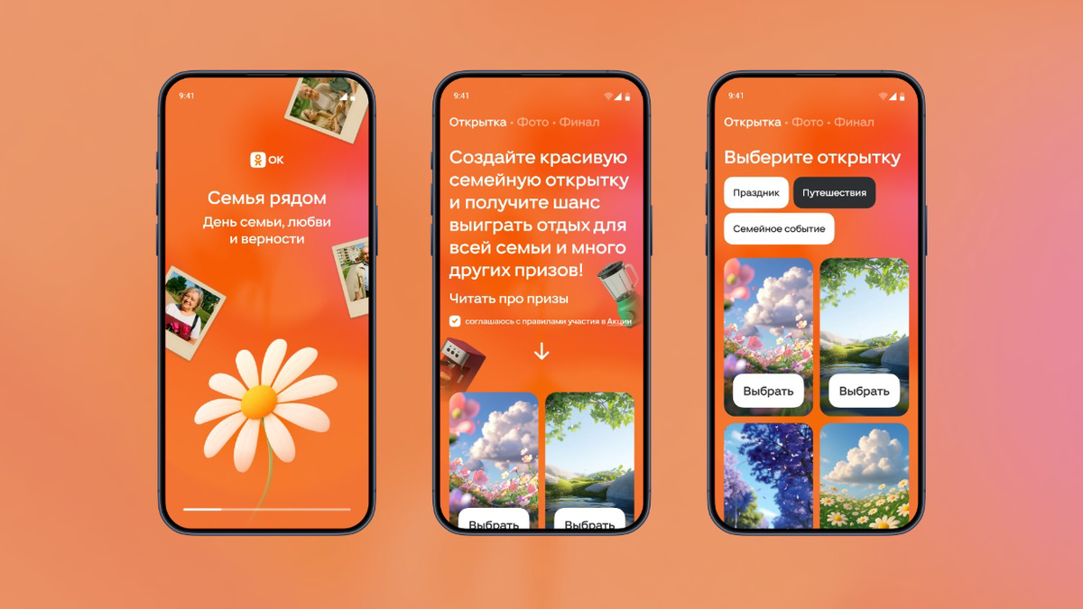 Социальная сеть «Одноклассники» (ОК) ко Дню семьи, любви и верности дала старт работе специального мини-приложения «Семья рядом», благодаря которому любой желающий может сделать из семейных фотографий полноценные открытки. Об этом во вторник, 8 июля, сообщили в пресс-службе платформы.