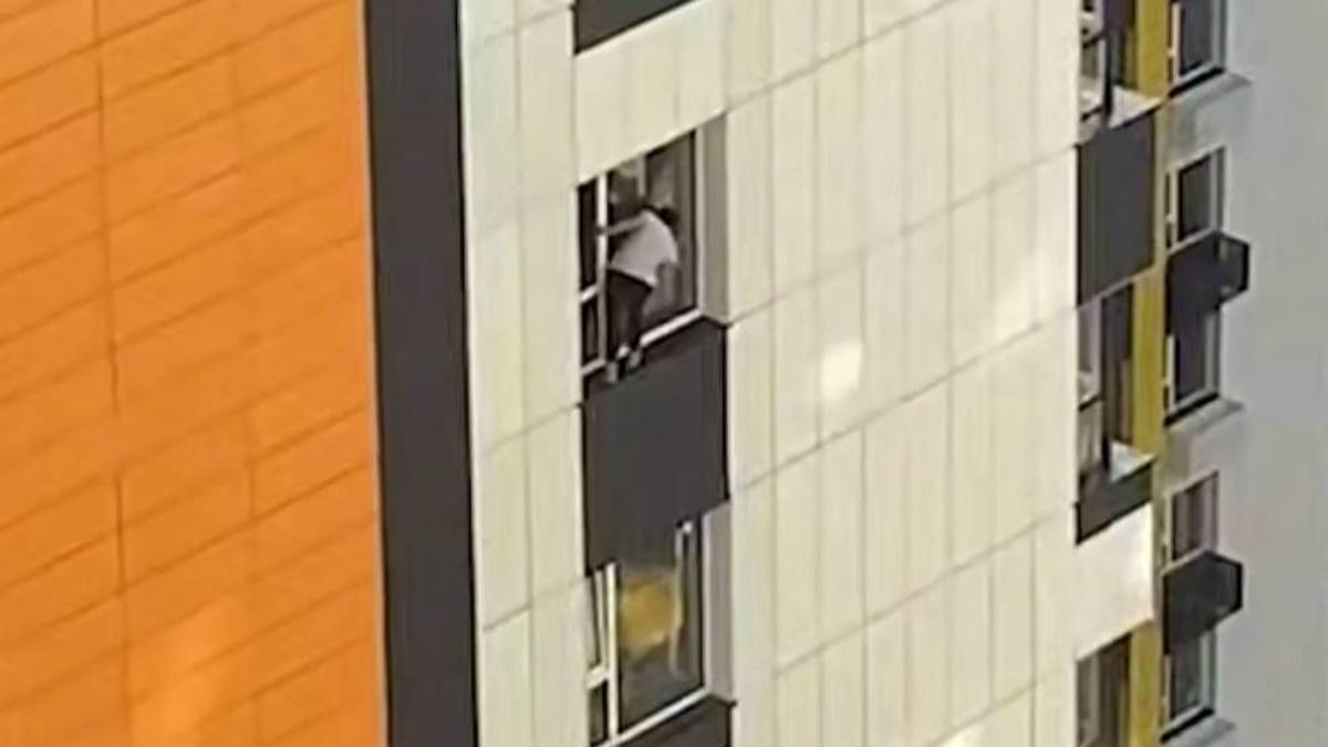В Сети набирает популярность видео, на котором жительница столичного ЖК «Спутник» моет окна, стоя на подоконнике 27-го этажа.