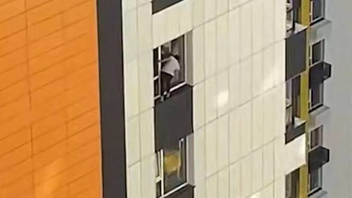 На опубликованных кадрах можно заметить, как женщина залезла на узкий подоконник без какой-либо подстраховки. Несмотря на риск упасть вниз, она уверенно мыла окно. Видео опубликовал телеканал РЕН ТВ.