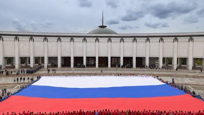 Затем у стен музея на Поклонной горе представители волонтерских и молодежных организаций развернули масштабный триколор, занесенный в «Книгу рекордов и достижений» страны, площадью около тысячи кв. метров. Участники также выпустили в небо 400 воздушных шаров в цветах российского флага.
