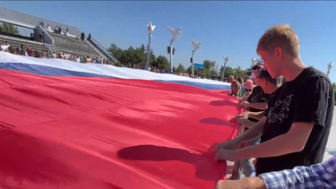 Огромный флаг России в две тысячи «квадратов» развернули в центре Мариуполя