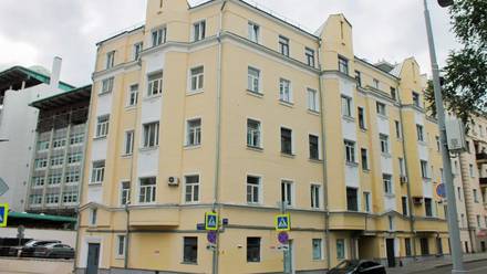 В районе Арбат завершается капитальный ремонт фасада дома в конструктивистском стиле