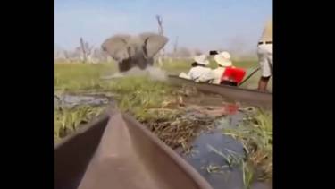 Туристы на сафари в африканской Ботсване слишком близко подплыли на каноэ к слонятам, из-за чего на них напала мать детенышей. Кадры происшествия опубликовал RT.