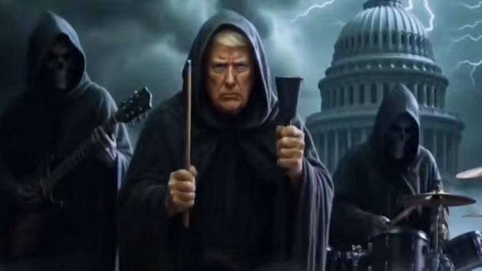 В ролике он и вице-президент США Джей Ди Вэнс играют в рок-группе, а директор административно-бюджетного управления страны Рассел Воут предстает в образе жнеца смерти.