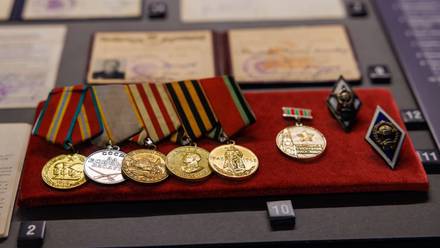 На выставке «Семейные реликвии» будут представлены предметы, переданные в дар Музею Победы дочерью ополченца Викторией Рафгатовной Валиевой. Среди уникальных экспонатов — медаль «За оборону Москвы», знак «Народное ополчение Москвы» и удостоверения к ним, орденская книжка, принадлежащие Рафгату Валиеву. Экспозицию дополнят документы — военный билет, удостоверения, дипломы, справки, а также архивные фотографии 1942–1992 годов.