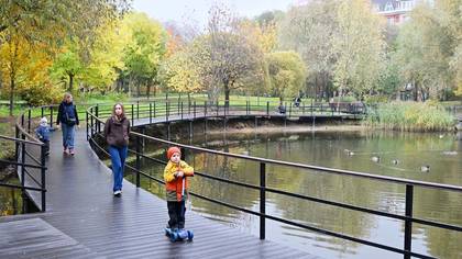 В парке обустроили пешеходные и велодорожки, установили более 220 лавочек, урн и других малых архитектурных форм.