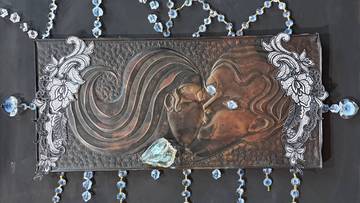 — Любочка Инжиневская сперла мне хрустальную люстру на той самой вечеринке Собчак с черной икрой. Что меня навело на мысль сделать серию работ из советских артефактов. Помните, такие «фрески» висели в квартирах с 70-х годов, — поделилась режиссер.