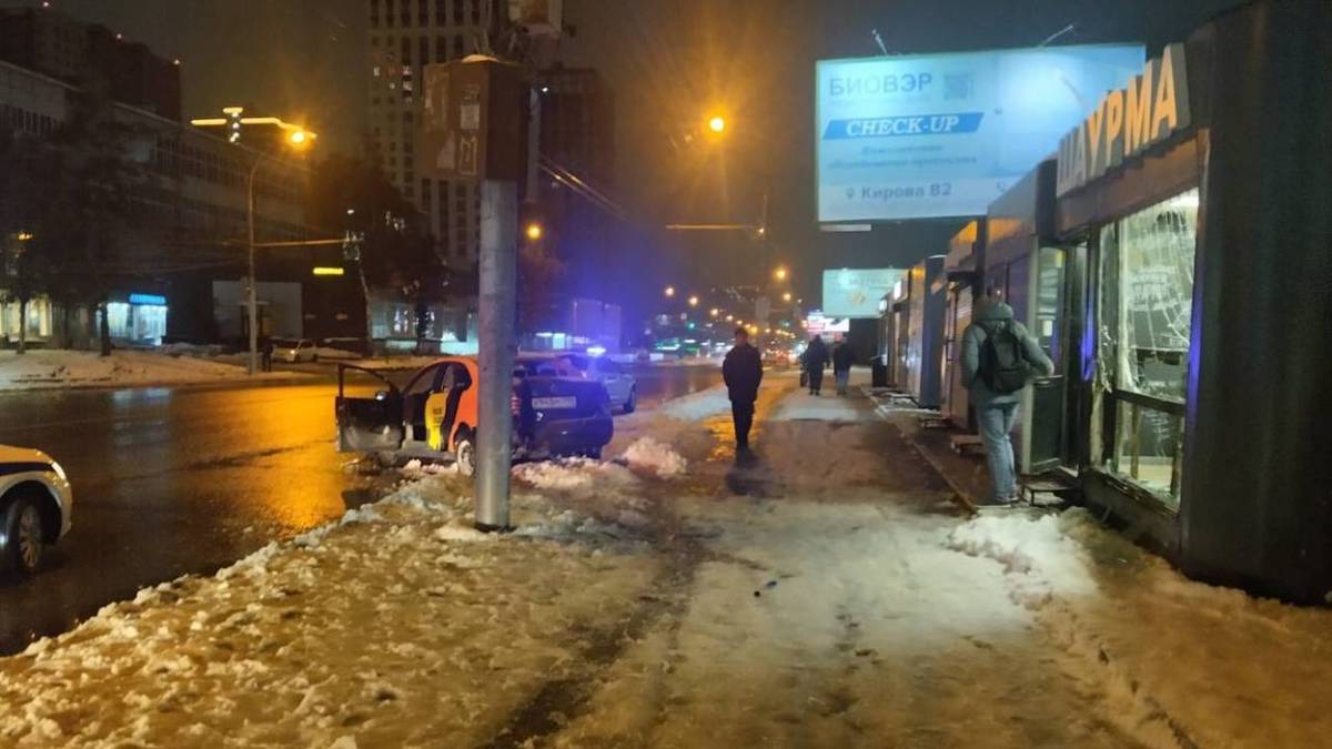Появились кадры аварии в Новосибирске, где пьяный водитель въехал в остановку