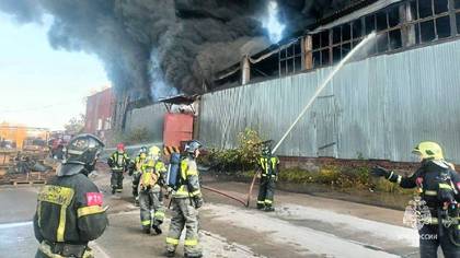Мощный пожар охватил склад в подмосковной Электростали, кровля частично рухнула