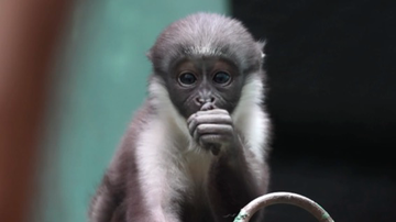 Детеныш краснокнижной мартышки Диана родился в Московском зоопарке