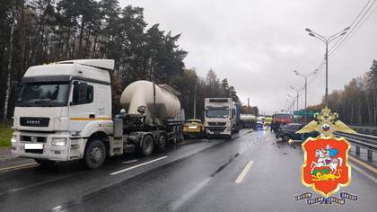 Трагедия произошла на 99-м километре трассы М-2 «Крым». По предварительным данным, водитель одного из большегрузов совершил попутное столкновение с тремя грузовыми и двумя легковыми автомобилями.