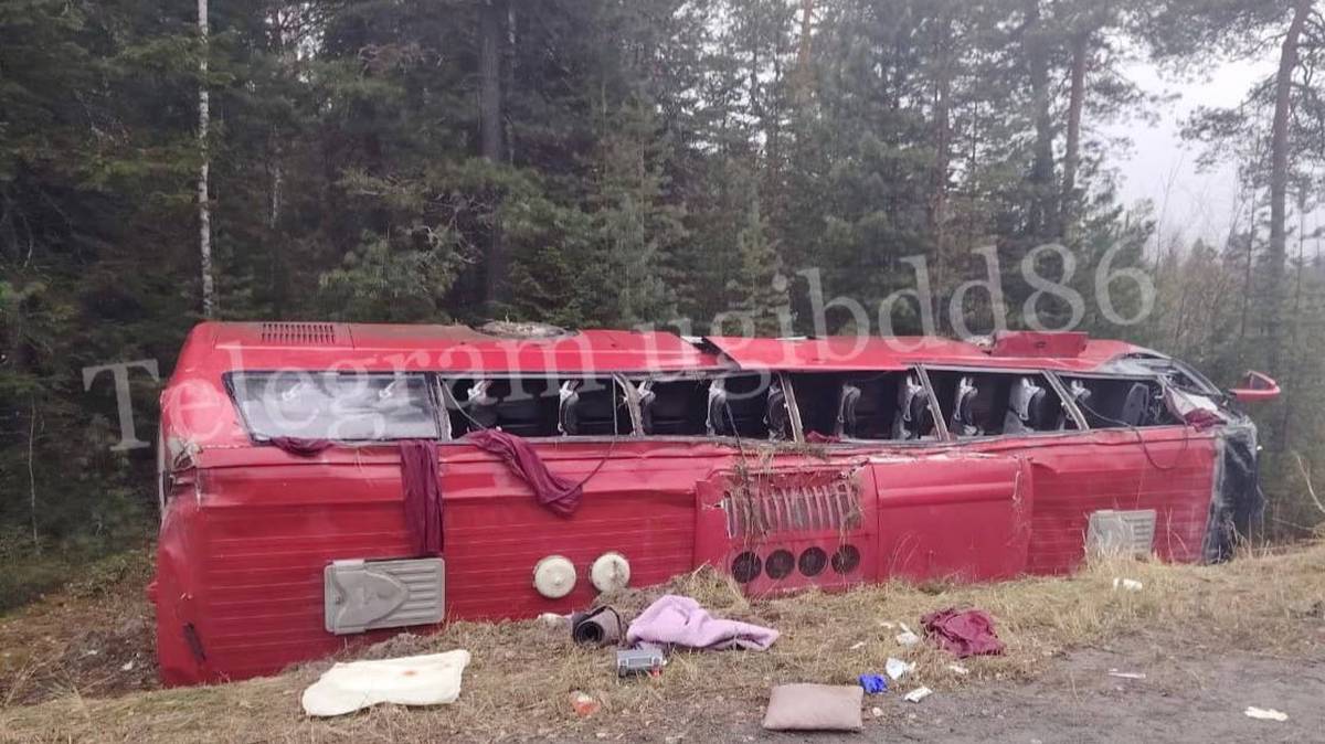 Пассажирский автобус перевернулся на трассе в Югре, погибли два человека