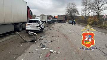 Два грузовика и семь легковушек столкнулись на Домодедовском шоссе в Подмосковье