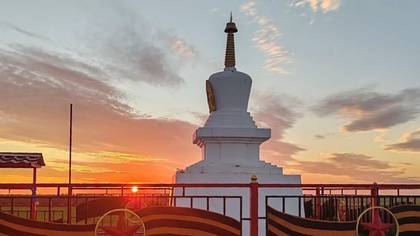По словам чиновника, вандалы не только сорвали молитвенные барабаны, но и сняли донецкий, бурятский, якутский, дагестанский и другие флаги. Эта буддийская ступа, которая называется субурган, появилась в поселке Мангуш в мае этого года после Дня Победы.