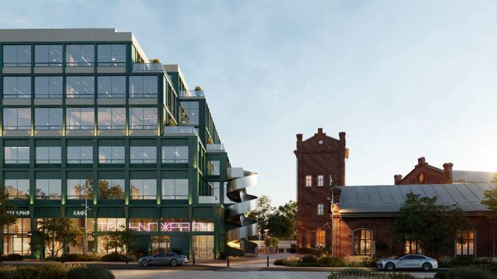Комплекс включает семиэтажный деловой корпус и отдельные industrial-офисы площадью от 30 до 3 000 квадратных метров, адаптированные под потребности креативных и производственных компаний — от дизайн-бюро и лабораторий до звукозаписывающих студий и мастерских 3D-печати.