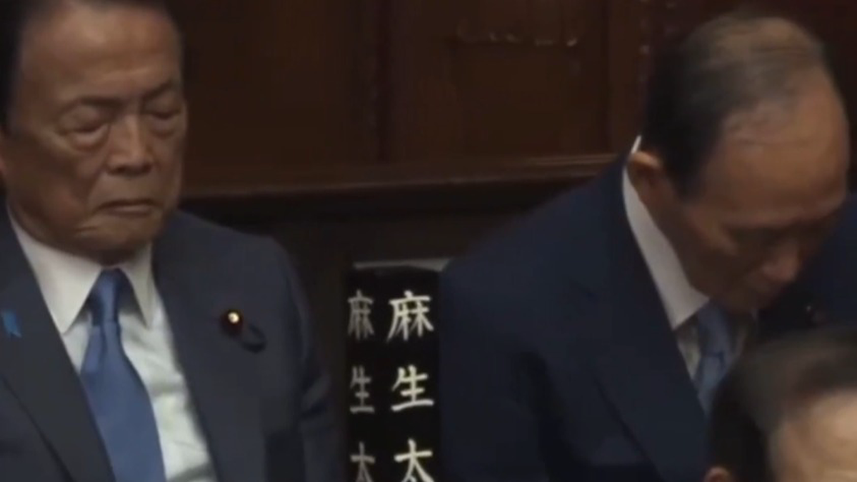 Так, политики Таро Асо, Есихидэ Суга, Фумио Кисиду и Сигэру Исибу сидели с закрытыми глазами, передает телеканал «Звезда».
