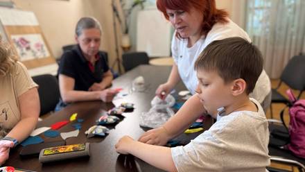 Детям особенно нравится аппликация, где они создают поделки из цветной бумаги и ткани. На некоторых занятиях они делают изделия на свободные темы или к праздникам, например, открытки ко Дню Победы для бойцов СВО.