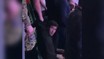 Спустя несколько секунд один из присутствующих резко одергивает мужчину, хватая его за капюшон и заставляя подняться. Россиянин что-то произносит в его адрес, однако слова на записи расслышать невозможно, передает Telegram-канал.