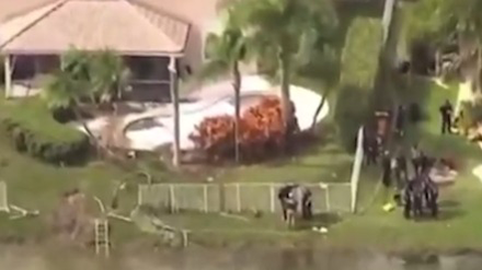 Крушение легкомоторного самолета Beechcraft King Air в городе Корал-Спрингс было зафиксировано камерой видеонаблюдения. Самолет едва не столкнулся с жилым домом, пробил забор и упал в озеро. Обломки машины раскиданы по всему заднему двору. Водолазы ищут пилота и пассажиров в озере. По предварительным данным, они погибли в результате инцидента.