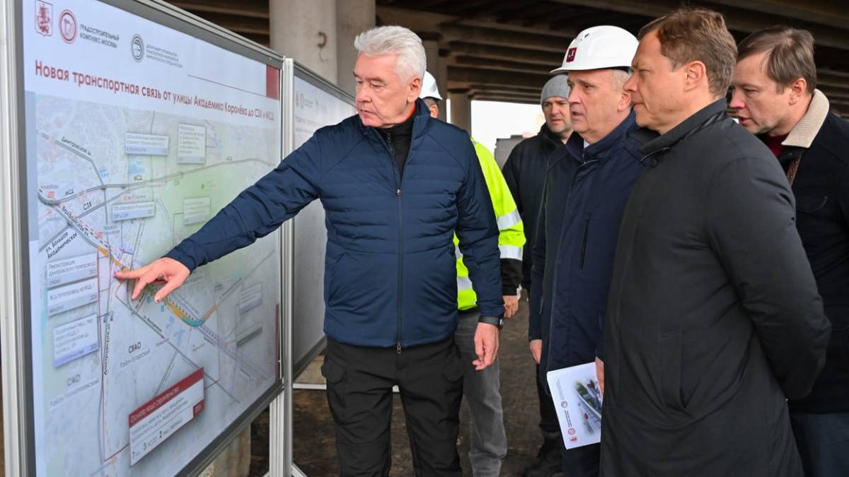 Собянин осмотрел строительство дороги между МСД и улицей Академика Королева