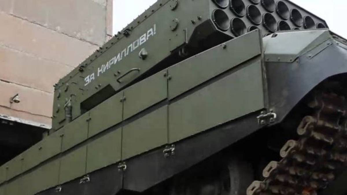 Спецоперация на УкраинеТяжелые огнеметные системы (ТОС) «Солнцепек», получившие модернизированный комплекс защиты от беспилотных летательных аппаратов, поступили в российские войска. Одна из машин с надписью «За Кириллова!» попала на видео, опубликованное в среду, 13 ноября, военным корреспондентом Евгением Поддубным.