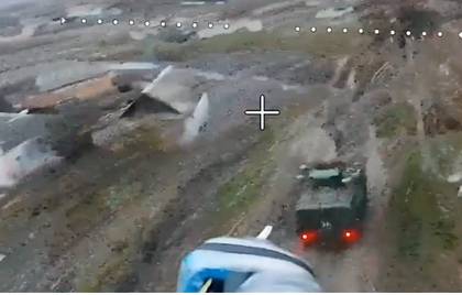 На кадрах видно, как FPV-дрон прямым попаданием подбивает бронемашину противника. Также в объектив камеры попали прилеты в несколько пикапов с украинскими военными.