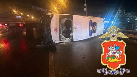 Водитель скорой помощи не справился с управлением, столкнулся с легковым автомобилем и задел дорожное ограждение на трассе М-7 в Подмосковье, в результате машина медиков перевернулась. Об этом в субботу, 15 ноября, сообщили в пресс-службе ГУ МВД по Московской области.