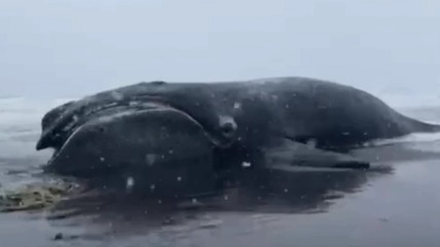 Мертвого японского кита с веревкой в пасти выбросило на берег Камчатки