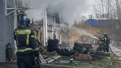 Появились кадры пожара в автосервисе на северо-западе Москвы