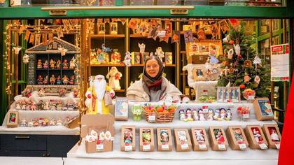 В самом центре столицы на переходе от Манежной площади к площади Революции развернулась живописная ярмарка, будто сошедшая со старинных открыток. На прилавках есть ватные елочные игрушки в стиле прошлых веков, текстильные куклы и фигурки Деда Мороза и Снегурочки.