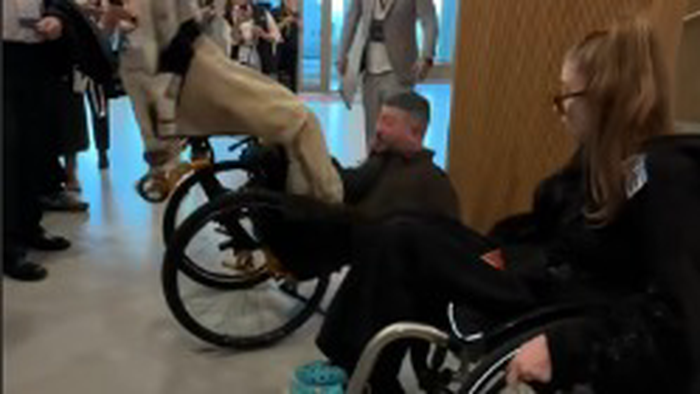 «Уронили Артемия»: Лебедев упал с инвалидной коляски, пытаясь встать на задние колеса