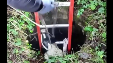 — Специалисты выехали на место и увидели уставшего, скулящего бедолагу. Пес изо всех сил звал на помощь. Ему спустили лестницу и помогли подняться, — передает Telegram-канал.