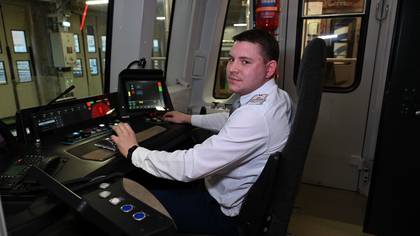 Машинист-инструктор электродепо «Сокол» Алексей Прокофьев демонстрирует кабину нового поезда «Москва-2024». Современные элементы управления и климатические системы сделали работу машиниста более комфортной / Фото: Анатолий Цымбалюк / Вечерняя Москва