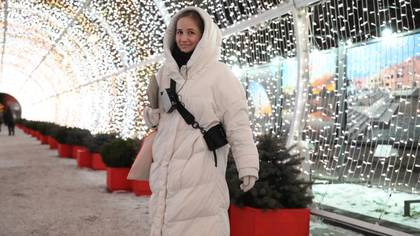 Экскурсовод Марина Иванова прогуливается рядом с яркими новогодними декорации на Тверском бульваре в столице / Фото: Пелагия Замятина / Вечерняя Москва