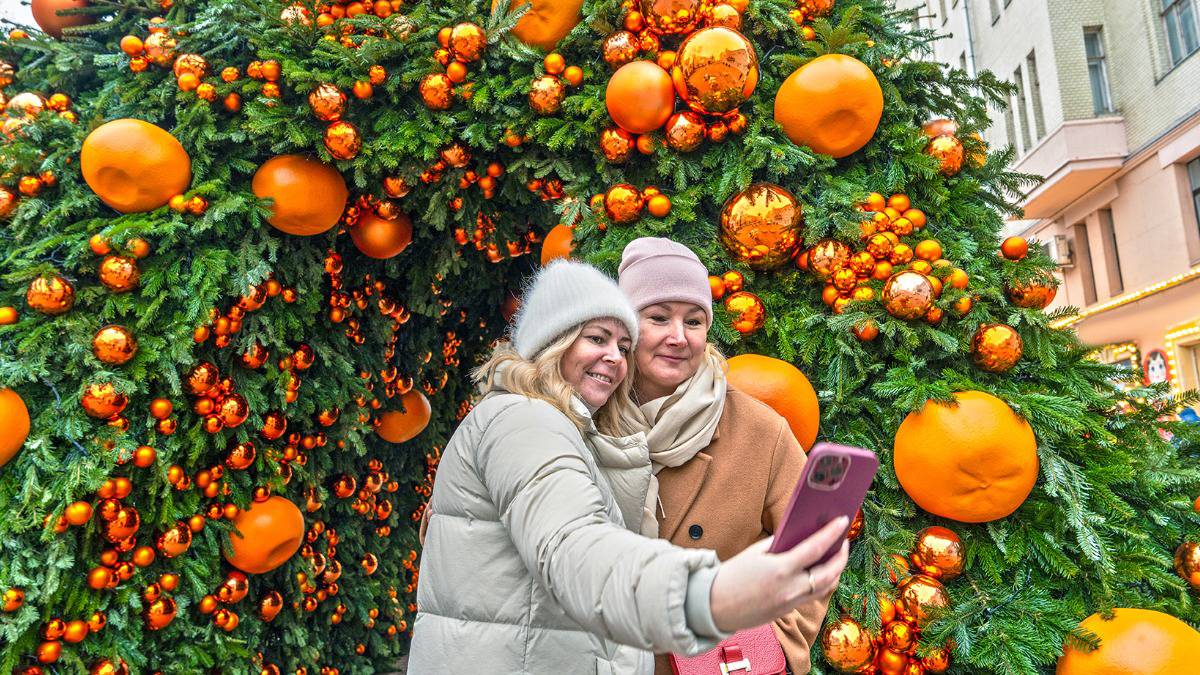 Новый год — 2026Специалисты под руководством дизайнера Марии Герман вручную изготовили множество искусственных мандаринов для праздничного оформления. Они начали подготовку площадки на Арбате летом.