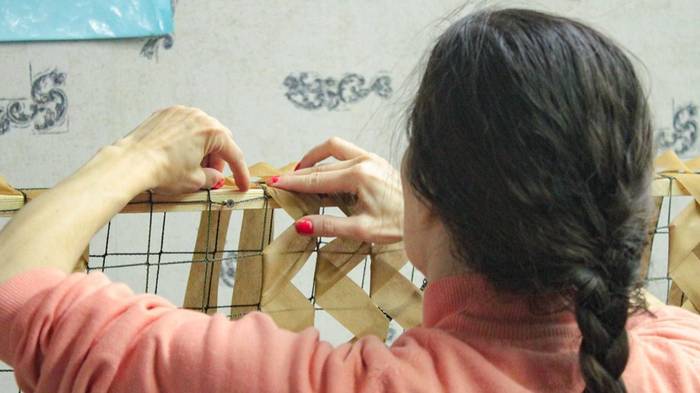 Волонтеры из Отрадного начали помогать фронту в 2022 году. Одними из первых к плетению маскировочных сетей подключились участники совета семей района. Сейчас в их распоряжении пять мастерских.