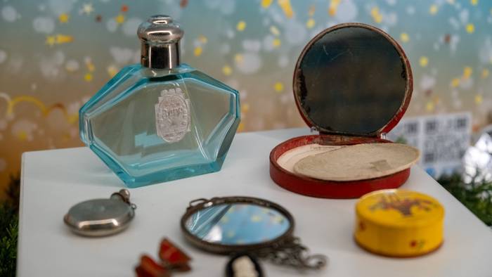 — Гости музея на Поклонной горе могут увидеть елочные игрушки 1940-1960-х годов — из стекла, ваты и фольги, стеклянные бусы для украшения новогодней елки, праздничные бумажные флажки и хлопушку. В витрине также показаны мужские и женские аксессуары, без которых невозможно представить подготовку к празднику — пудреницы, броши и флаконы для духов. Среди уникальных экспонатов — коробочка с румянами «Fard En Beaute», принадлежавшая заслуженной артистке РСФСР Лидии Колесниковой. Дополняет экспозицию граммофон изготовленный в послевоенный период на Ленинградском заводе «Северный пресс», и грампластинка с записью русских народных песен «Зимушка, зима», «Ласточка» в исполнении Государственного хора русской песни под управлением А.В. Свешникова, — отметили в Музее Победы.
