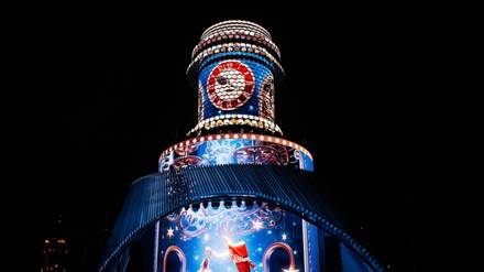 На катке кинопарка «Москино», подведомственного столичному департаменту культуры, установили елку из 184 LED-экранов. Размеры технологичной конструкции — 12 метров в высоту и 8 метров в ширину, она состоит из 11 ярусов. Общее разрешение экранов составляет 3840 на 1920 пикселей.