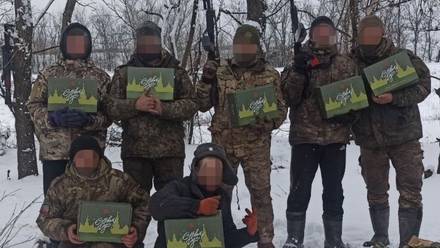 ДНР. Бойцы 268-го гвардейского самоходно-артиллерийского полка прямо на позициях получили подарочные наборы от Министерства обороны РФ. Там есть все, что поможет солдатам в перерывах между выполнением боевых задач отметить праздник / Фото: Личный архив