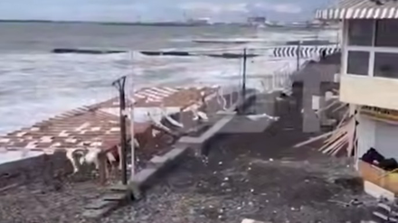 Из-за мощного ветра вода вышла из берегов и начала смывать стоящие у нее на пути постройки. Сильные повреждения также получил пляж, на который теперь вынесло обломки конструкций и шезлонгов.