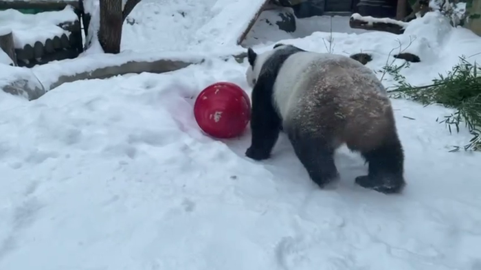 Панды Жуи и Диндин гуляют по снегу / Видео: Telegram / Светлана Акулова