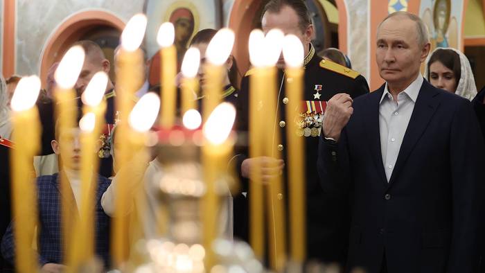 — Владимир Путин присутствует на рождественском богослужении в одном из храмов Подмосковья. С ним вместе военные и их семьи, — цитирует его РИА Новости.