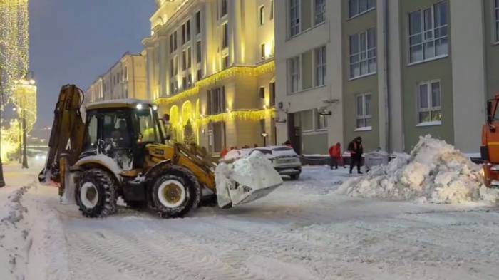 Повсеместно организованы мероприятия по вывозу с улично-дорожной сети сформированных за время сильнейшего снегопада снежных валов. В течение дня работы по погрузке и вывозу снега будут идти и на дворовых территориях.