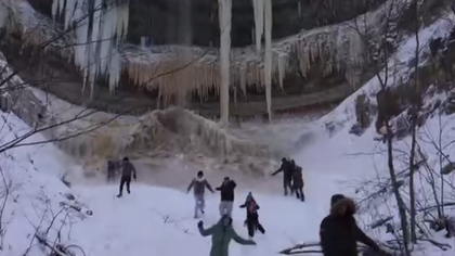 Замерзший водопад обрушился на туристов в Эстонии (видео)