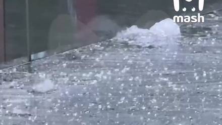По информации канала, льдина откололась от башни «Запад» и пролетела примерно 40 этажей (около 120 метров — прим. «ВМ»).