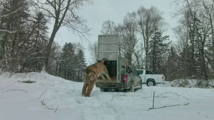 Пойманного в амурском поселке тигра выпустили в тайгу (видео)